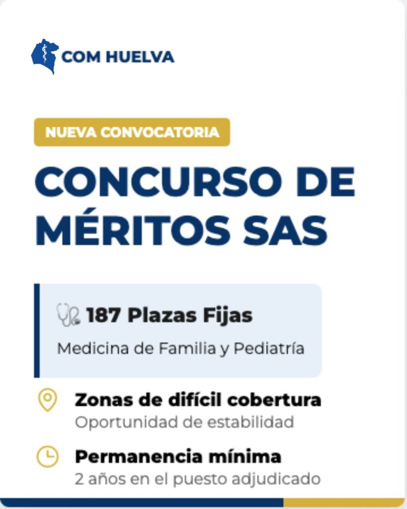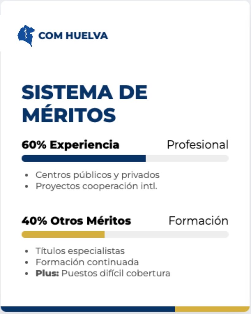 En concreto, la convocatoria –que se ha publicado en el Boletín Oficial de la Junta de Andalucía (BOJA)-, contempla 125 plazas de Medicina de Familia y 62 plazas de Pediatría de Atención Primaria, reservándose el 10% del total para personas con discapacidad, con un 1% específico para personas con enfermedad mental, en cumplimiento de la normativa vigente. Específicamente para la provincia de Huelva se busca cubrir 20 plazas de Medicina de Familia y 24 plazas de Pediatría de Atención Primaria. El procedimiento se desarrollará mediante concurso de méritos, sin fase de oposición, valorándose principalmente la experiencia profesional, que supondrá el 60% de la puntuación total, junto a otros méritos, que representarán el 40%, con especial reconocimiento a la experiencia previa en puestos declarados de difícil cobertura.