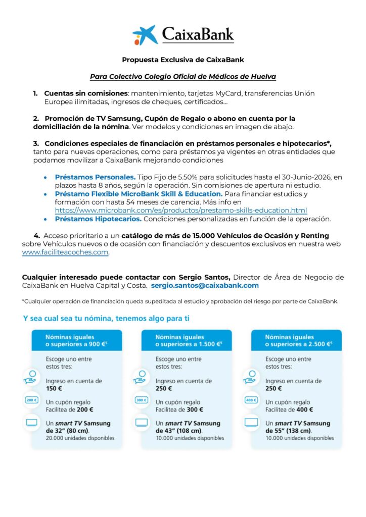 Productos CAIXABANK para los colegiados médicos en Huelva