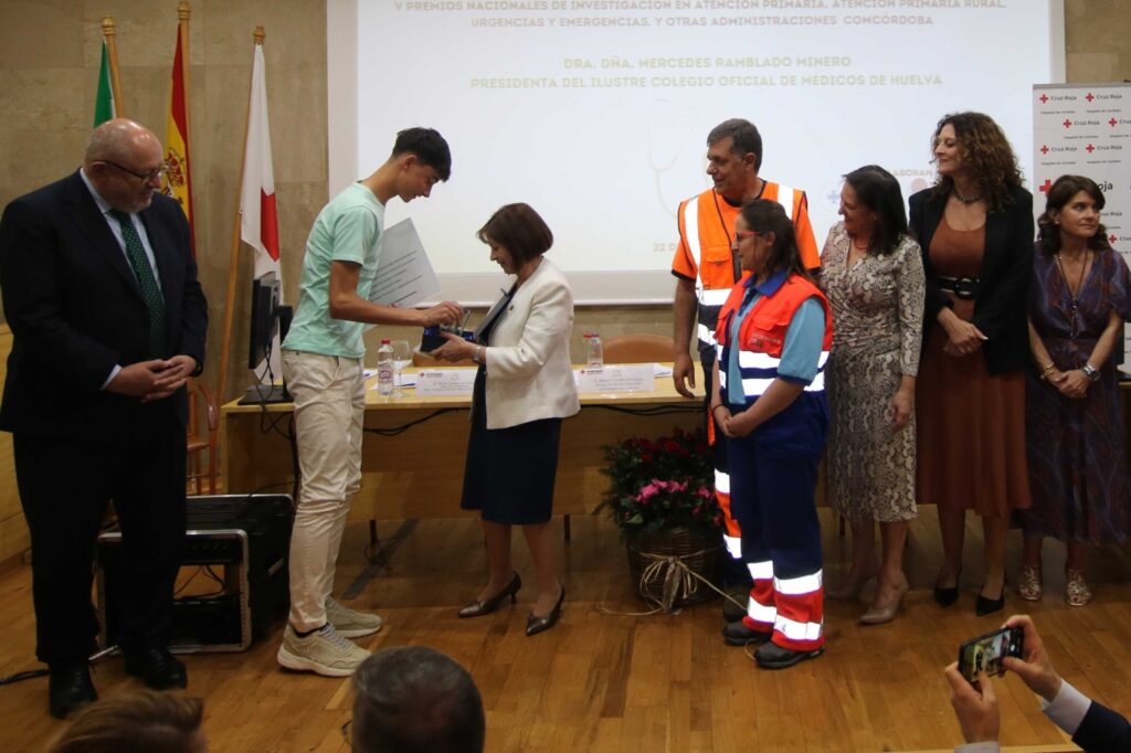 El joven adamuceño Julio Rodríguez fue el encargado de recoger la placa de manos de la presidenta del Colegio de Médicos de Huelva, Mercedes Ramblado, en el transcurso de un emotivo acto en Córdoba. Con la presencia de la presidenta del Colegio de Médicos cordobés, Camen Arias, el rector de la Universidad cordobesa, Manuel Torralbo, ela delegada de Salud, María Jesús Botella; o la directora gerente del hospital Cruz Roja, Lucía Retenga.